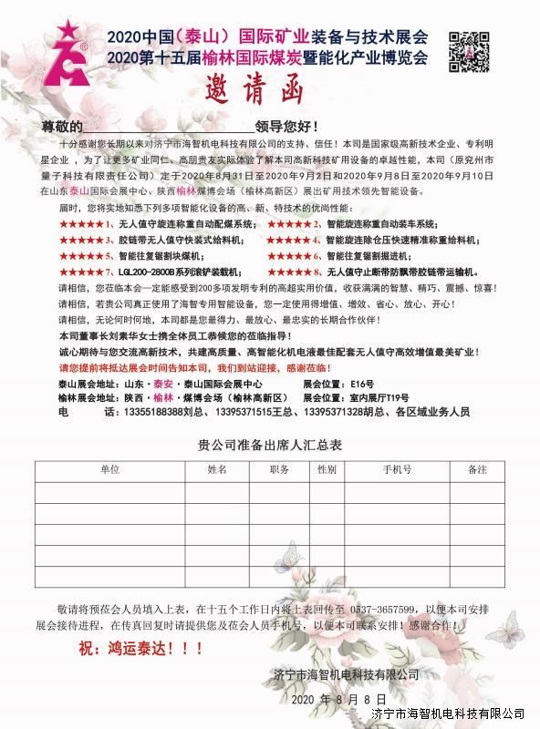 > 邀請函:2020中國(泰山)國際礦業(yè)裝備與技術(shù)展覽會