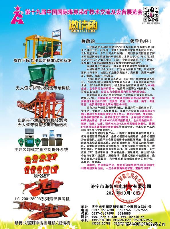 邀請函-第十九屆中國國際煤炭采礦技術(shù)交流及設(shè)備展覽會
